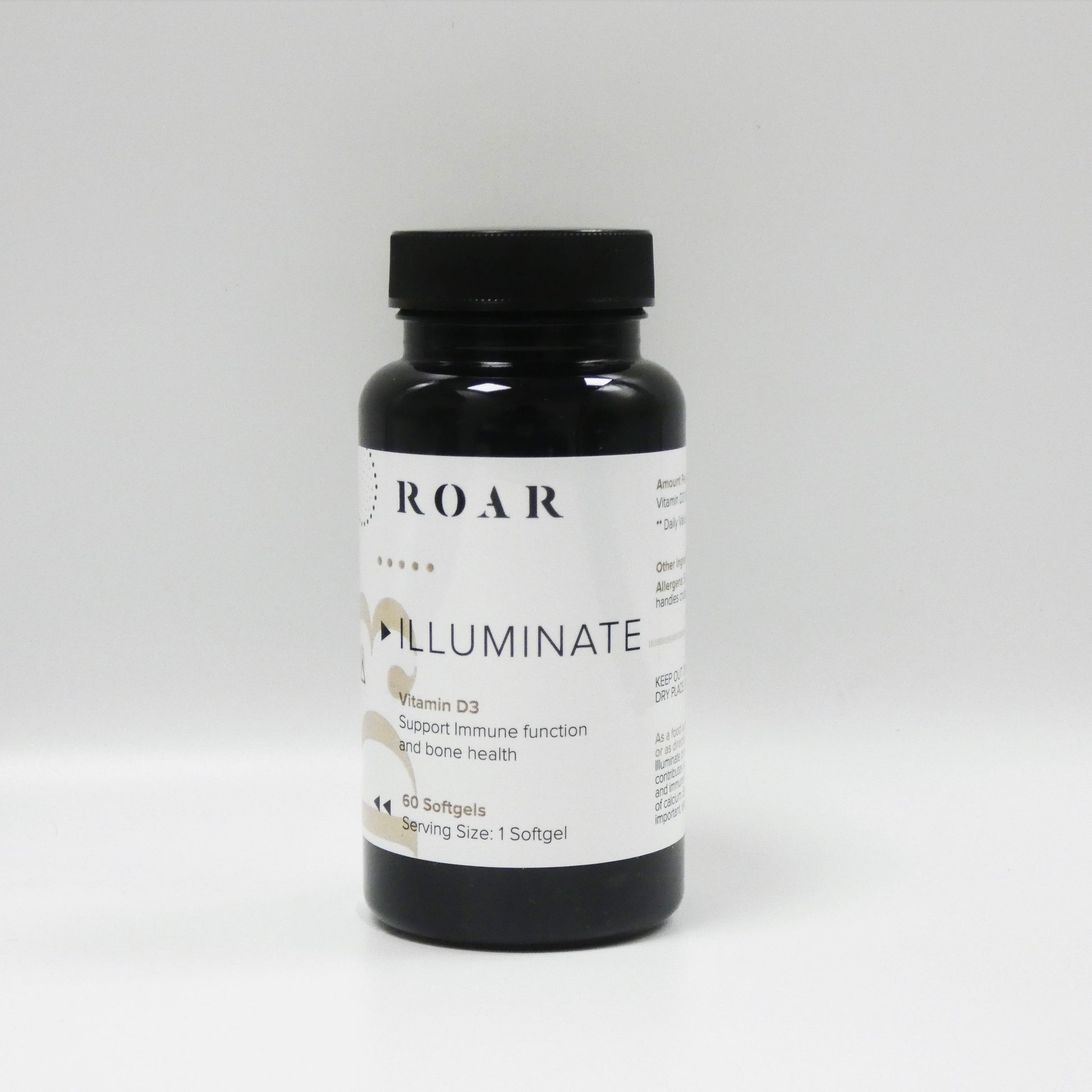 Roar Illuminate provides high potency Vitamin D, the “sunshine vitamin”, which contributes to the maintenance of normal bones, teeth, muscle function and immune function and assists with normal absorption and utilisation of calcium. Essential for overall health and well-being, supplementation is important, especially where natural ‘sunshine’ vitamin production is limited.